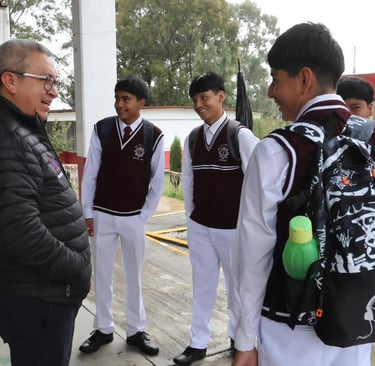 Durante su visita, dio la bienvenida a estudiantes, docentes y familias, e hizo un llamado a trabajar en un ambiente de paz, respeto y armonía, en línea con los principios de la Nueva Escuela Mexicana (NEM).