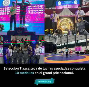Miércoles 5 de noviembre 2025.- La selección tlaxcalteca de luchas asociadas cerró con gran éxito su participación en el Grand Prix Nacional 2025, al conquistar 10 medallas -dos de oro, cuatro de plata y cuatro de bronce- en la competencia realizada en Oaxtepec, Morelos.