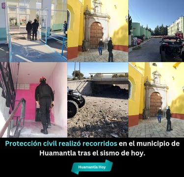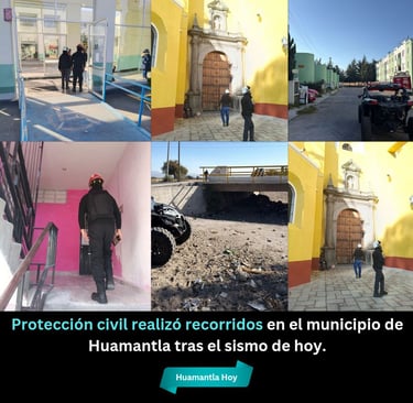 Huamantla, Tlaxcala.- Viernes 2 Enero 2025.- Tras el sismo registrado la mañana de este viernes 2 de enero de 2026, el presidente municipal Salvador Santos Cedillo giró instrucciones de manera inmediata para que la Dirección de Protección Civil Municipal realizara recorridos de verificación en todo el municipio, con el objetivo de descartar posibles daños y salvaguardar la integridad de la ciudadanía.