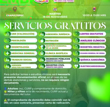 El SMDIF invita a todas las y los habitantes de Chapultepec a acudir y aprovechar los servicios que se ofrecerán, reafirmando así el trabajo en conjunto para seguir construyendo un Huamantla con bienestar y oportunidades para todos.