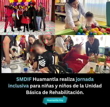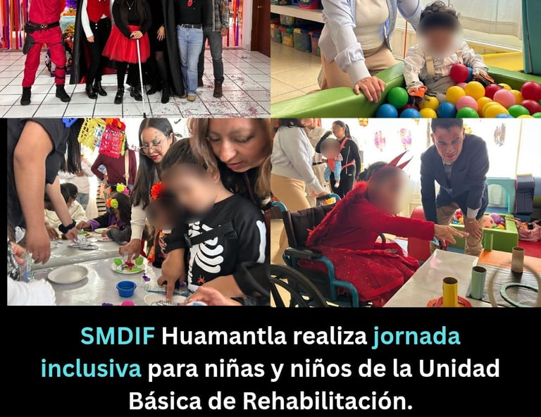 Huamantla, Tlax., 31 de Octubre 2025. - Con el objetivo de fortalecer la integración, la convivencia y la inclusión social de las niñas y niños que reciben atención terapéutica, el Sistema Municipal para el Desarrollo Integral de la Familia (SMDIF) Huamantla, llevó a cabo una jornada especial en la Unidad Básica de Rehabilitación (UBR).