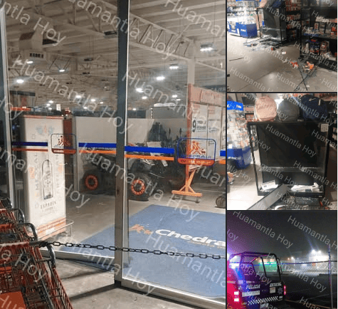 Apizaco, Tlaxcala.- Miércoles 5 Noviembre 2025.- Un grupo de al menos cinco sujetos ingresó por la fuerza al centro comercial Chedraui en Apizaco durante la madrugada de este miércoles, donde rompieron vitrinas y sustrajeron equipos de telefonía y videojuegos para posteriormente huir sin ser detenidos.