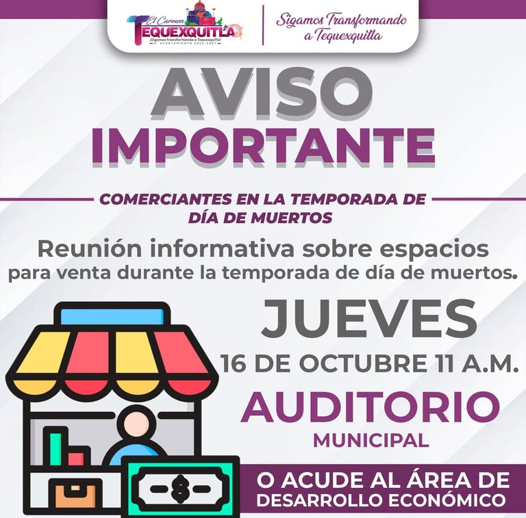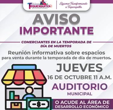 #Tequexquitla informa reunión para comerciantes en la temporada de día de muertos.