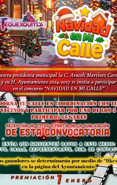 El Gobierno del Carmen Tequexquitla invita a la población a participar en el concurso "Navidad en mi calle", donde cada calle podrá demostrar su creatividad y trabajo en equipo para crear el mejor ambiente navideño.