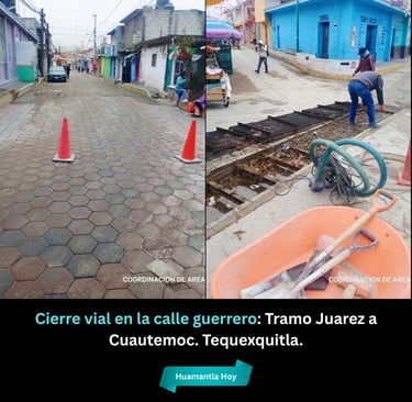 #Tequexquitla | El Gobierno Municipal del Carmen Tequexquitla informa que la circulación vehicular sobre la calle Guerrero, en el tramo comprendido entre Benito Juárez y Cuauhtémoc, permanecerá cerrada temporalmente.