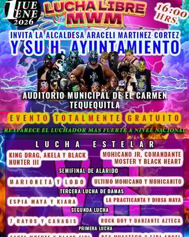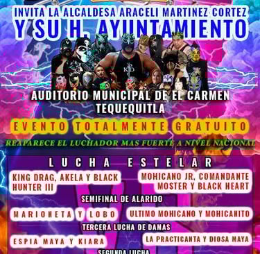 #Tequexquitla | El Gobierno Municipal del Carmen Tequexquitla invita al Gran evento de Lucha Libre.