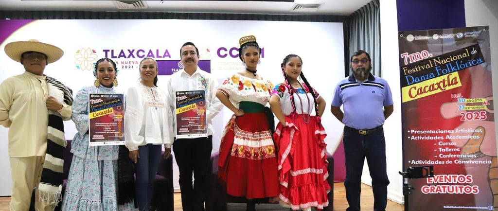 Lunes 18 de agosto 2025.- La Secretaría de Cultura federal, la Secretaría de Cultura del estado y el Ballet Folklórico Cacaxtla A.C., anunciaron el 7mo. Festival Nacional de Danza Folklórica Cacaxtla, que se llevará a cabo del 30 de agosto al 27 de septiembre de 2025.