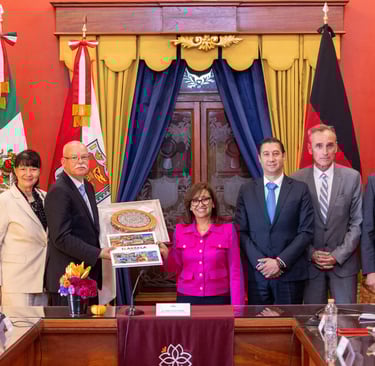 Tras el evento protocolario, la gobernadora Lorena Cuéllar encabezó un diálogo abierto con el embajador Clemens Von Goetze, donde se abordaron temas relacionados con inversión, salud, infraestructura y fortalecimiento de la educación dual en la entidad.