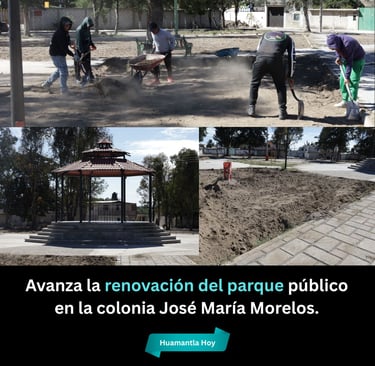 Avanza la renovación del parque público en la colonia NCP José María Morelos; un compromiso cumplido con la ciudadanía huamantleca