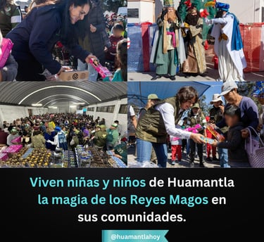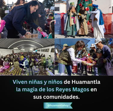 Huamantla, Tlax. Miércoles 7 de Enero 2026.- Con rostros radiantes y corazones llenos de ilusión, miles de niñas y niños de Huamantla vivieron una mañana llena de magia con la caravana de los Reyes Magos que recorrió diversas comunidades del municipio.